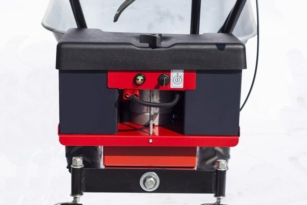 - Equipée de 2 batteries rechargeables au plomb de 12 Volts et 55 Ah chacune.
