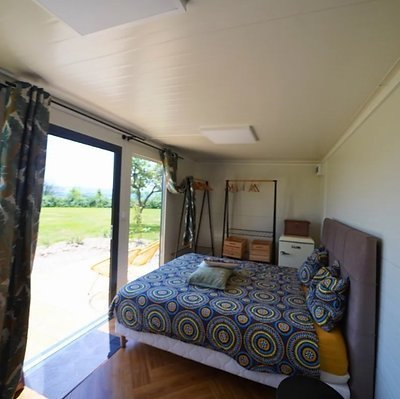 L’unité comprend une salle de bain complète avec douche et toilettes, ainsi qu’une kitchenette compacte, offrant une autonomie totale. Le sol en vinyle avec finition chêne ajoute une touche chaleureuse et élégante à l’intérieur, tout en étant facile à entretenir.