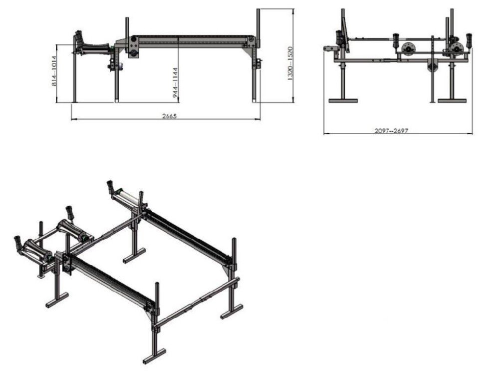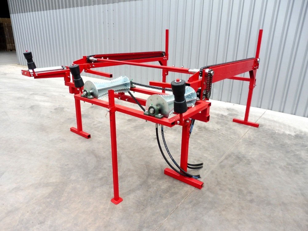 Deck d’alimentation hydraulique avec 2 chaines d’entrainement et rouleaux d’alimentation hydraulique.